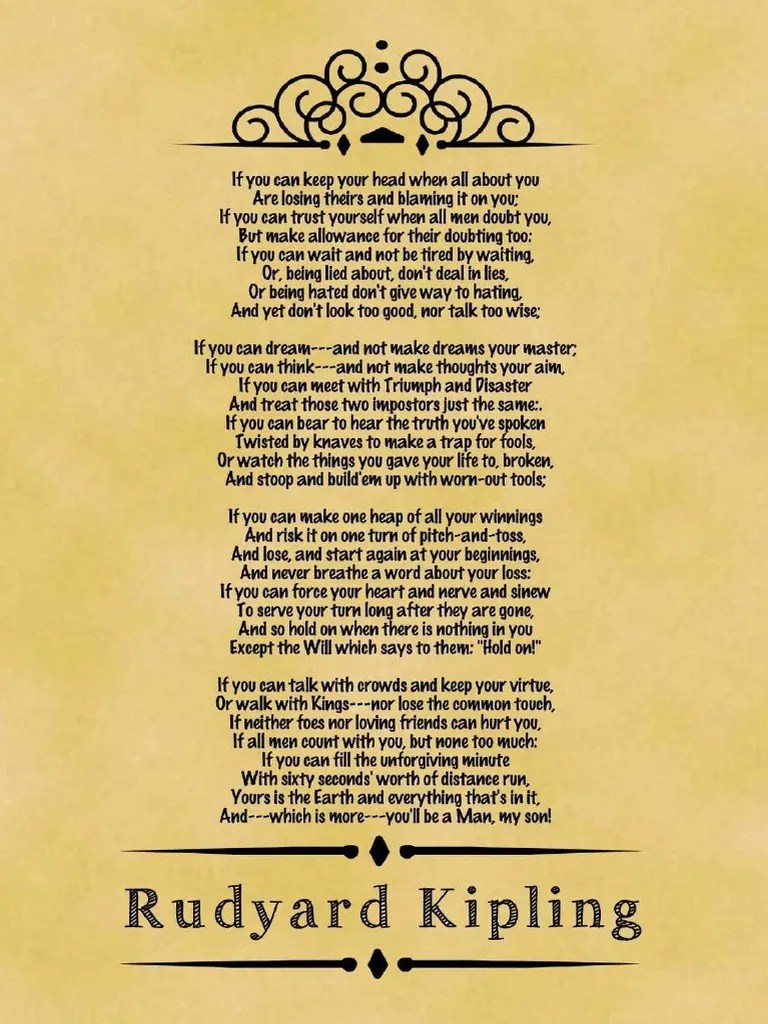 Are losing theirs and blaming it on you; Web celebrity choices poems if by rudyard kipling if you can keep your head when all about you are losing theirs and blaming it on you, if you can trust yourself when all men doubt you, but make. If you can wait and not be tired by waiting, or being lied about,.