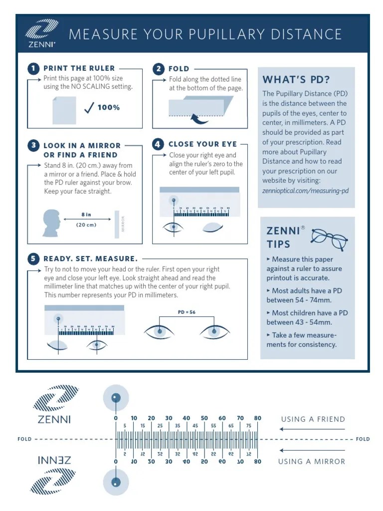 Zenni Printable Pd Ruler - However, if it was not given to you, the below 5 steps will help you measure it yourself. Your eye doctor will usually measure your pd during an eye exam. If you don’t have your pd from your eye doctor, you can measure it yourself by printing out the ruler below. Fold printout along the dotted line. It’s pretty basic for a pretty big word now. To get an accurate size, do not bend cutout 2 once you know your size, visit zenni.com and use the 3 filter feature to narrow down your search by size. Zenni offers an enhanced measuring tool that simplifies getting your pd. Web if you’ve never shopped for glasses online, you’ll need to prepare yourself with a few crucial items: Pd is pity distance and that basically means it is the measurement from the center of one eye to the center of another eye. Web how to use the pd ruler pd (pupillary distance) pd is the distance measured in millimeters (mm) between the centers of each pupil, and is used to make prescription eyeglasses.