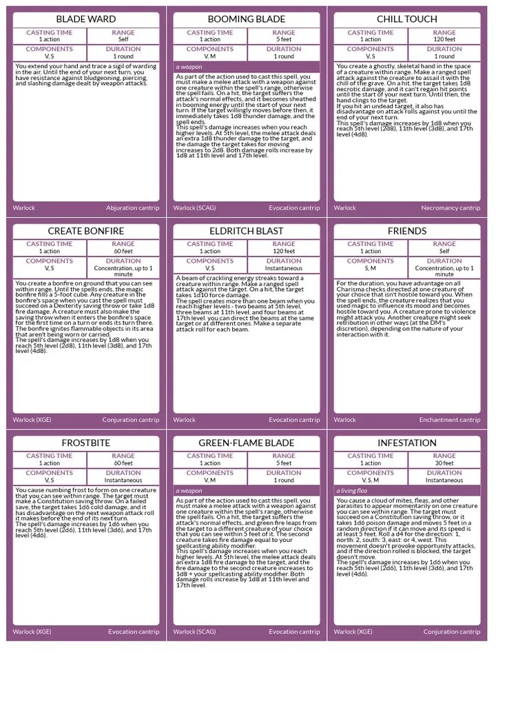 Web dungeons and dragons (d&d) fifth edition (5e) spells. When playing with kids, having the cards in front of them makes everything easier to see and touch than having everything printed on one big character sheet. Added the artificer cards (thank you frustratedprogrammer). Open combined pdf in acrobat reader. Generic bard cleric druid paladin ranger sorcerer warlock wizard artificer enjoy!